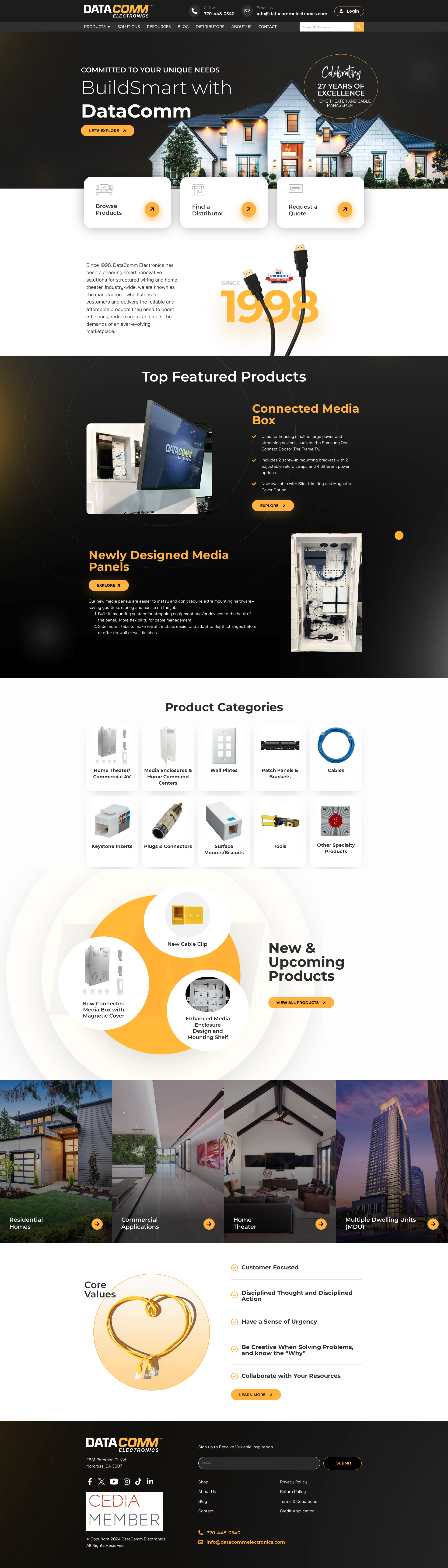 DataComm Electronics wanted a website that showcased their innovative structured media enclosures, home theater solutions, and residential and commercial products. They needed a clean, organized site that highlighted their extensive product lineup, detailed specifications, and installer-focused solutions while remaining user-friendly for homeowners, contractors, and distributors.